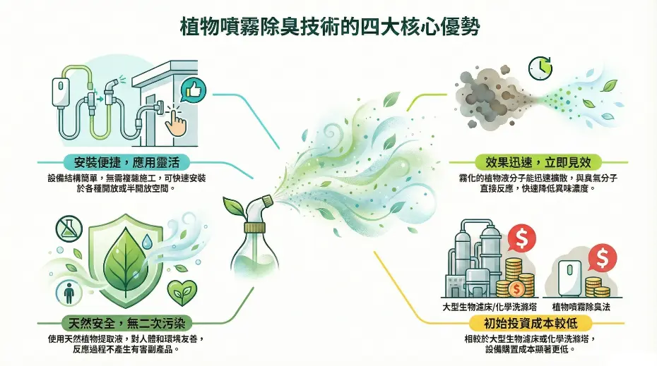 列出各種除臭技術特性,幫助貴公司選擇合適除臭方式。